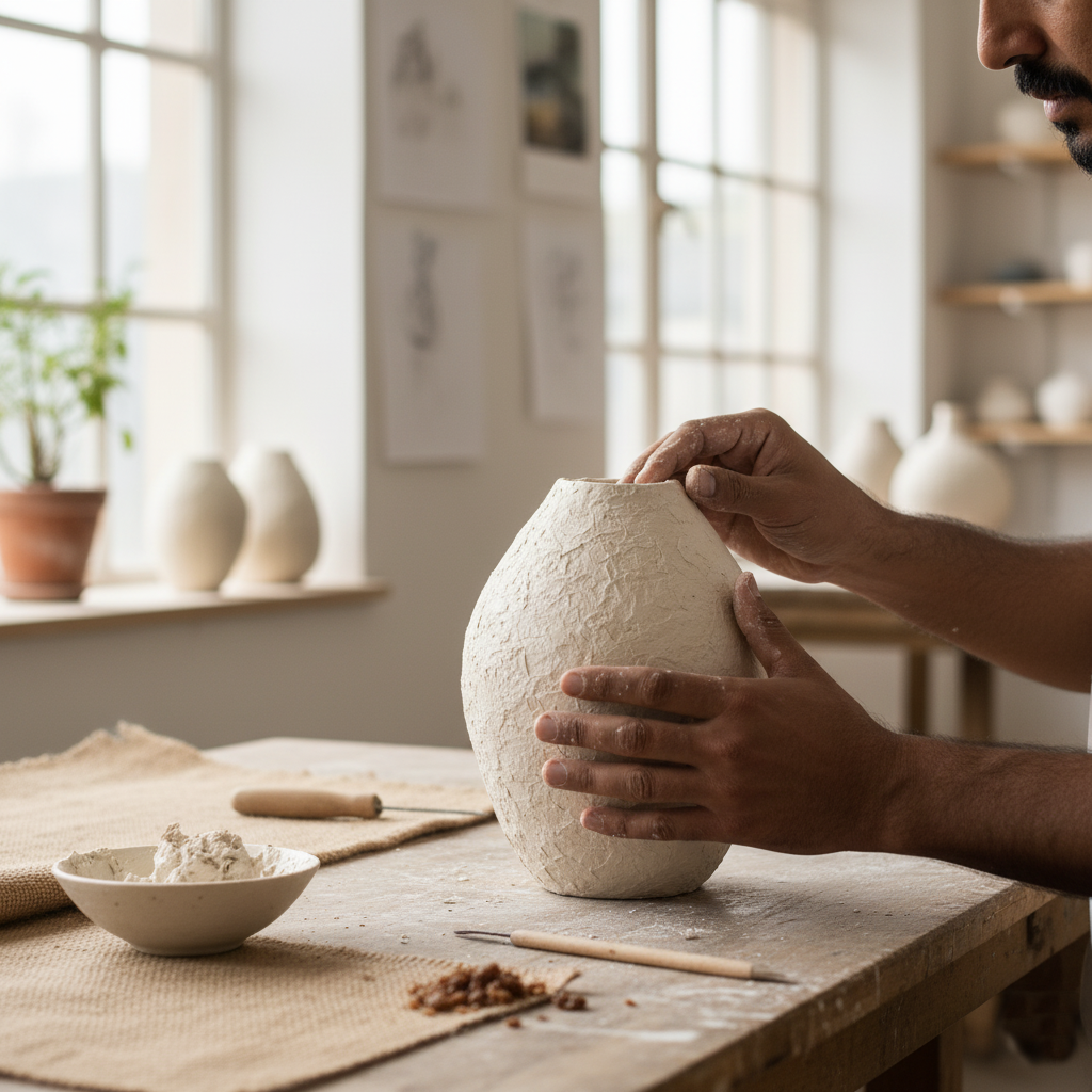 We hand-sculpt timeless, eco-friendly art using an ancient, zero-waste process of paper and natural clay. Each piece honours tradition while bringing sustainable beauty to modern spaces.
